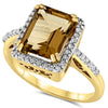 14k Yellow Gold Emerald Cut Genuine Light Smoky Quartz and Diamond Halo Ring